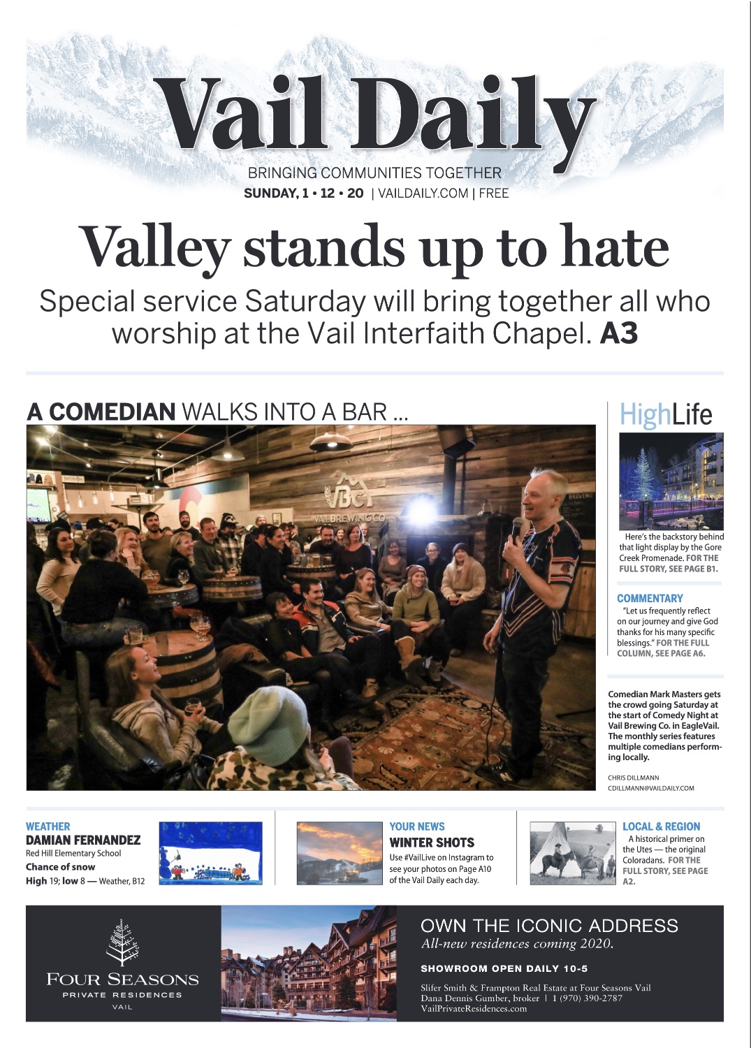 Front page of Vail Daily, 2020/01/12 (Screenshot)