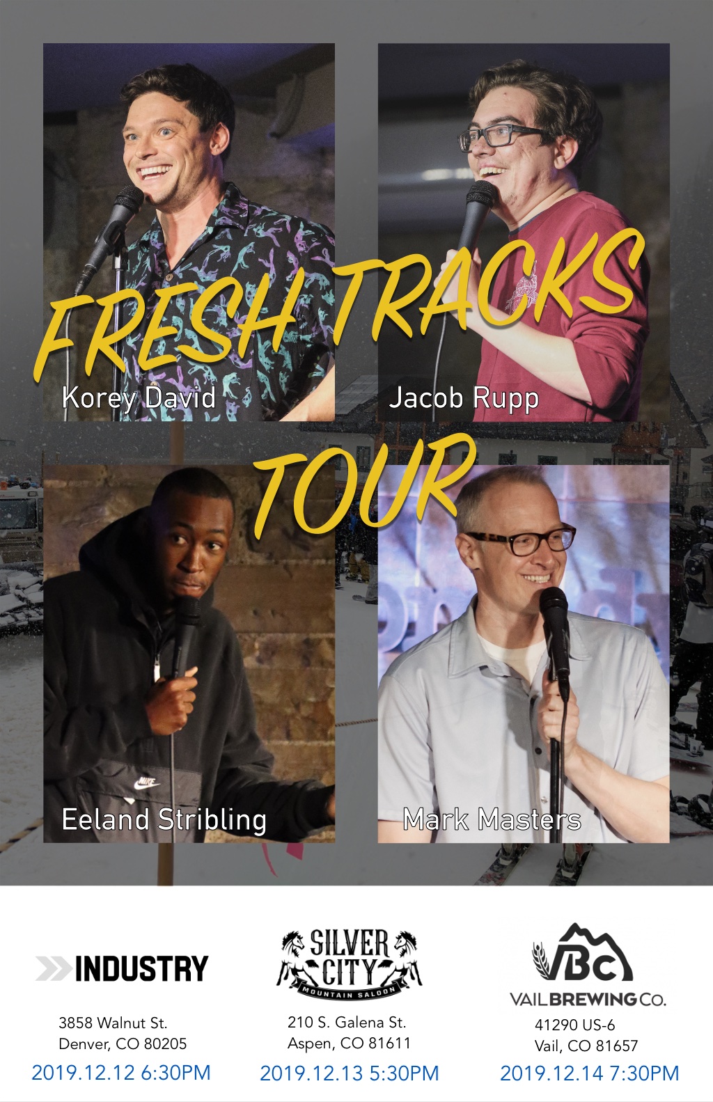 Mark Masters: Mark Masters is a Denver, Colorado based comedian who wrote a book in 2019 called Not Good Yet. He runs a monthly showcase called the Vail Comedy Show in Vail, Colorado. Korey David: Korey David is a Denver based comedian that draws his comedy from growing up the angsty middle child in a Mormon household. He's the black sheep of the family and isn't afraid to show it. He's performed his theatrical and expressive act around the country at places like the Funny Bone, Improv Comedy Club, and Four Corners Comedy Festival. He was recently a finalist in the 2019 Comedy Works New Faces Contest in Denver. Jacob Rupp: Jacob Rupp is a small comedian who lives in Denver. He produces a showcase at Westfax Brewing and License No.1. You may have seen him on the High Plains, Border City, and Savage Henry comedy festivals or maybe in the finals of the Comedy Works New Faces Contest. He's also an inspiring Baby Bottle Pop Mascot. Eeland Stribling: Eeland Stribling is a Wildlife Biologist from Denver, Colorado. He has performed at the North Carolina and Altercation Comedy Festival, and on the PBS Sounds on 29th Comedy special. Follow him at @blacksteveirwin on Instagram. Austin Black: Austin Black is comedian from Iowa based in Denver, Colorado and is a finalist in the Comedy Works Clean Comedy Contest. He's successfully begged to be a part of comedy festivals such as Floodwater and Green Gravel.